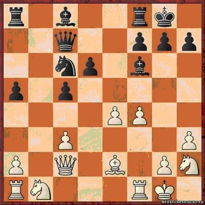 1.e4c5 2.f4 Кc6 3.Кf3 g6 4.g3 Сg7 5.Сg2 e6 6.0-0 Кge7 7.Кc3 d5 8.e5 закрытый вариант сицилианской защиты 8 a6 9.d3 b5 10.Фe2 Фa5 11.Кd1 c4 ? рано. Этим ходом черные предлагают белым укрепить цепь d4-e5 [проще было 11 0-0] 12.d4 Фb6 13.Фf2 h5 попытка заторможения атаки на королевком фланге 14.h3 a5 15.g4 h:g4 16.h:g4 Сa6 17.c3 0-0-0 ?! черные убежали от атаки на короля, но слабые пункты остались [можно было начинать свою игру 17 b4 18.a3 b:c3 19.b:c3 a4 20.Лa2 Кa5 21.Кe3 Кb3] 18.Сe3 b4 19.Кh4 Сh6 20.f5 С:e3 21.К:e3 g:f5 22.g:f5 Лdf8 ? медленный ход [нужно было занять свободную линию 22 Лdg8 23.Лad1 Крb7] 23.f6 Кg8