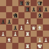 Bh6! у черных прекрасные шансы на победу. К сожалению, мне не хватило техники и партия закончилась вничью. Партия интересна стандартной жертвой качества черных, потом отдачей качества белыми - в борьбе за инициативу.
