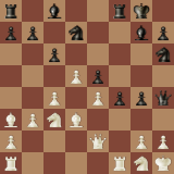 7.Bg5, и теперь черные оживляют игру перестроечкой: конь с с6 идет на g6, где примет участие в атаке короля, пешки строят центр, стесняя белые фигуры, а ладья занимает открывающуюся линию g. Атака получена.
