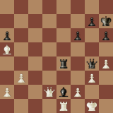 0. Лима - Майлс, 1995. Англичанин Энтони Майлс славился своим необычным подходом к дебютам. Наибольшую известность ему принесла победа над Карповым в 1е4 а6. Эта позиция, полученная из бокового дебюта, в духе Майлса: пространство у соперника, но фигуры черных, как пружина, в любой момент готовы распрямиться и показать, кто в доме хозяин. Найдите перестройку черных. Подсказка: найдите у белых слабость и надавите.